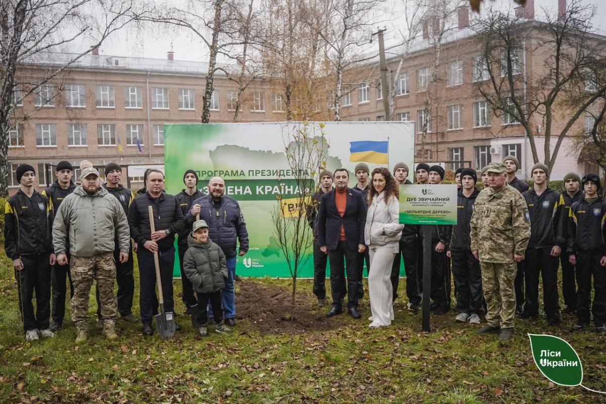 Мільярдний дуб посадили Іван Юдов — демобілізований лісівник, нині очільник міста обласного осередку Спілки воїнів-лісівників України, а також шестирічний Святослав Грицаєнко — син полеглого Героя України. Їхня спільна участь стала символом стійкості, захисту та майбутнього.
